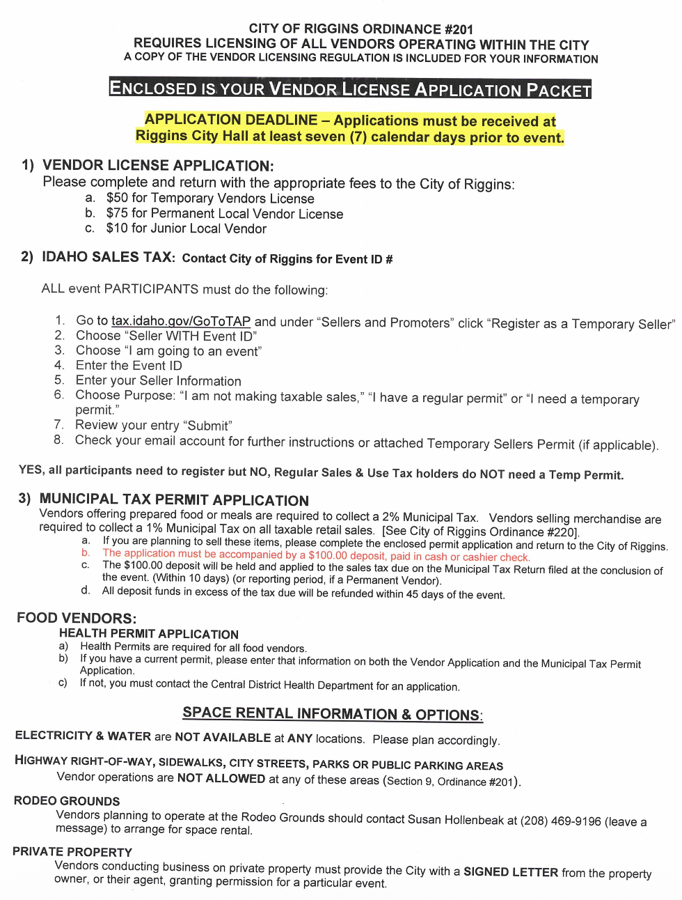 Vendor Information - Riggins Rodeo & City of Riggins