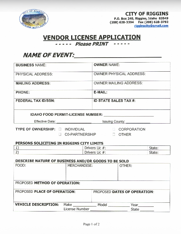 If you are planning to be a vendor during the Riggins Rodeo event weekend, Please fill out and submit the linked forms below. You will not be able to vend without submitting these forms!